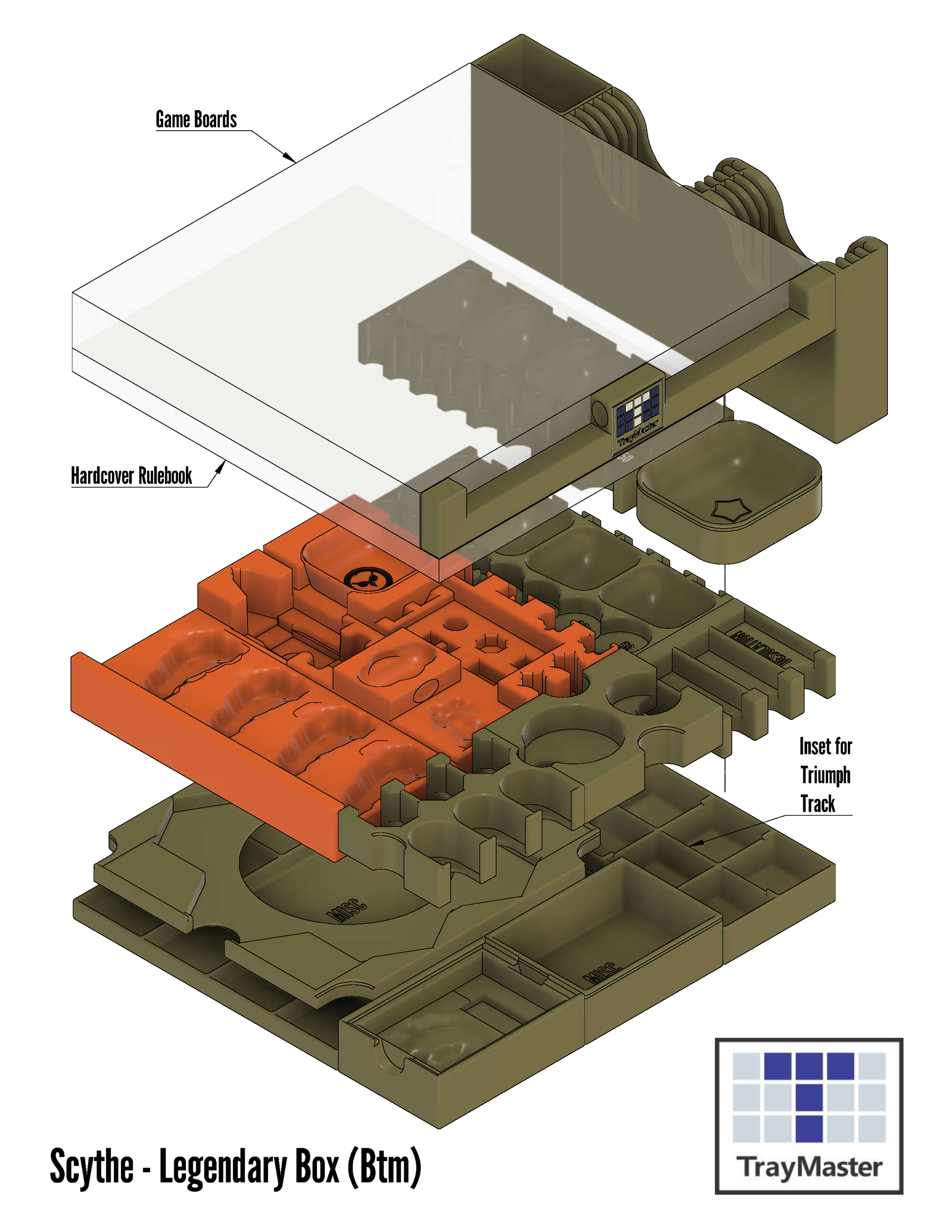 Legal Notice: This insert is not an Official Stonemaier Games product. Scythe is published by Stonemaier Games — Designer: Jamey Stegmaier — Art & Worldbuilding: Jakub Rozalski. TrayMaster is not affiliated with Meeple Source.